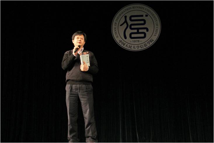 接下来,杜小勇院长为大家隆重介绍了3354cc金沙集团出版的三十五周年纪念文集《信息骄子》,并向几位校友作者代表赠送了此书。在发言中,他表达了对学业有成的信息人、对供稿者和工作者的真诚谢意。96级校友宋炜和03级校友谭中意在发言中,纷纷表达了对大学生活的怀念之情,对信息人的团结精神和真诚友谊的感怀之情,和对学弟学妹的美好祝福。正如杜小勇院长所说“榜样的力量是无穷的”,同学们受到极大的感动和鼓舞,全场气氛达到高潮。