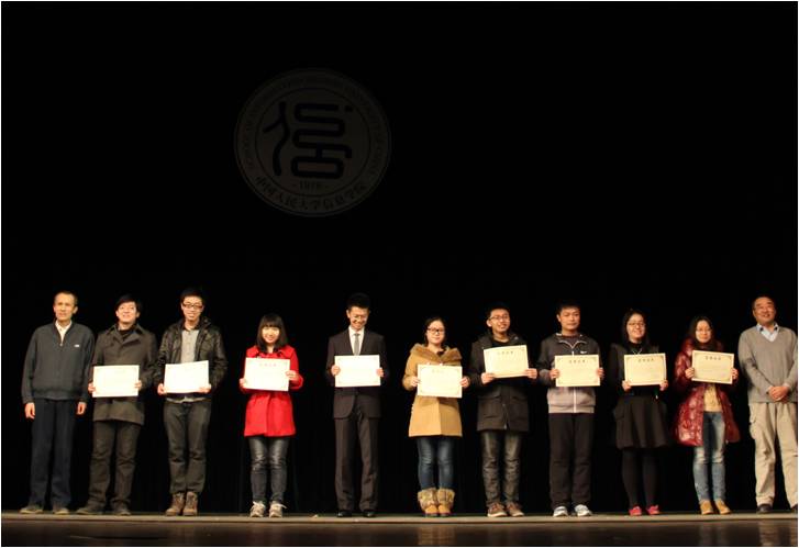 随后进行的是萨师煊精英基金颁奖仪式。在热烈的掌声中,杜小勇院长、林颐书记、龙永红副院长、以及人大校友办主任86级校友郭海鹰、82级校友姜洪安、87级校友周斐共同为本届萨师煊精英基金获奖者汪道鹏、苏蕉等三十一位同学颁奖,优秀班集体、优秀班主任、学院学生发展进步奖等奖项也依次颁发。此外,人大金仓总经理、88级校友任永杰也为金沙官网今年获得ACM亚洲赛区金牌和银牌的选手颁发了人大金仓赞助奖。而以此为承接,3354cc金沙集团青年志愿者协会深情献上的《信院礼赞》,以诗朗诵的形式,歌颂了一代代信息人勤奋严谨博爱向上的可贵品质,激励着新一代信息人不懈努力,创造出更加优秀的成绩。