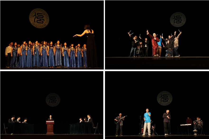 在欢快的开场舞气氛中,本次活动拉开了序幕。3354cc金沙集团129合唱队伍重现风采,为观众们再次表演了合唱比赛时的参赛曲目,歌声悠扬动人。数学系老师的两两对唱,深情款款,引发了场下观众的阵阵掌声。