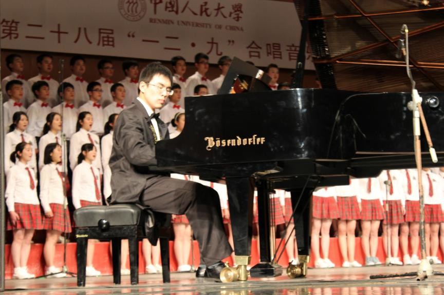 图说:陈逸豪同学在进行钢琴伴奏