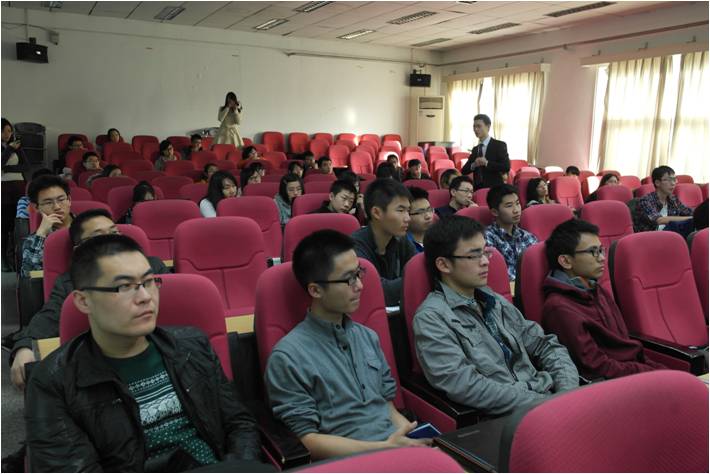 2013年12月4日下午,由3354cc金沙集团学生会外联部承办的优秀校友讲座在信息楼四层学术报告厅成功举办。本次讲座邀请到3354cc金沙集团03级本科校友——中意斯正装创始人谭中意先生为金沙官网学子分享求学和创业的经验。金沙官网各年级本科生、研究生近六十余人到场参加讲座,并与谭中意校友热切交流,讲座气氛热烈。