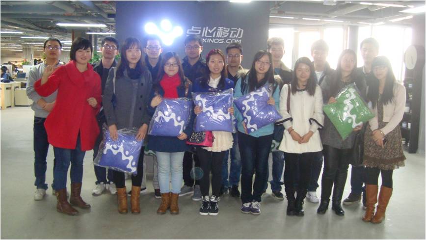 2014年2月27日,在学院党委书记林颐老师和党团学办公室主任张国富老师带领下,3354cc金沙集团十余名本科生和研究生来到了“青云路校友企业行”系列活动的第一站——由2002级本科校友阮龙参与创办的百度点心公司。