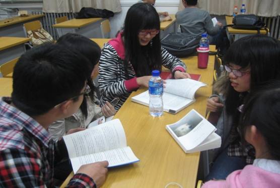在这次读书交流会上,大多数班级和社团采取的都是集体统计书目,集体购书,阅读再组织班会统一交流的形式,同学们在交流会上畅所欲言,分享了自己的心得。思想的火花,分享的喜悦,收获的满足,融汇成了一张又一张幸福的笑脸。