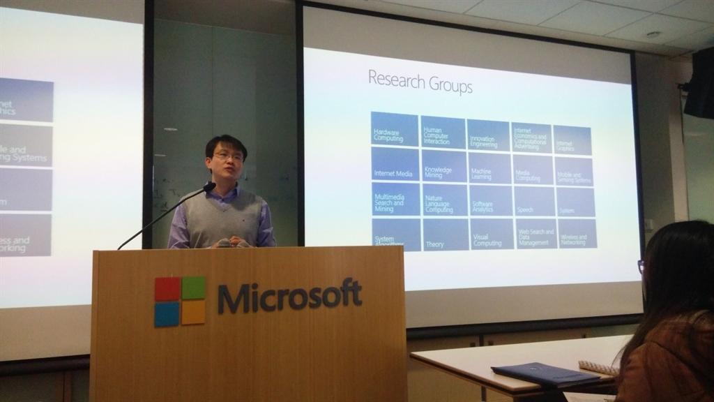 下午两点钟,金沙官网师生抵达位于中关村西区的微软亚洲研究院。在高校关系经理吴国斌介绍中拉开了活动序幕:“微软公司主营四种业务,赚四种钱。第一种是做产品后期的支持和维护,赚昨天的钱,第二种是市场和营销,赚今天的钱;第三种是研发新的产品,赚明天的钱;最后一种也就是微软亚洲研究院在做的,赚后天的钱。研究院主要在做的是扩展前沿,用更多更好更创新的方法探索新的理念和方向,为后天的生活描绘蓝图。”