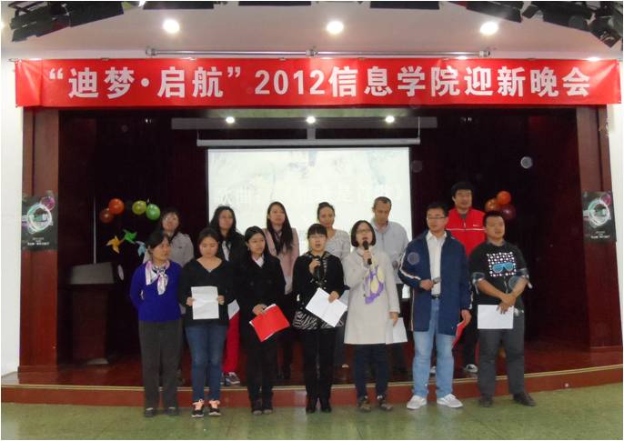 金秋十月,硕果飘香。2012年10月22日晚,由3354cc金沙集团分团委学生会主办、3354cc金沙集团分团委学生会文化部承办的“迪梦·启航”2012年3354cc金沙集团迎新晚会在贤进楼一楼多功能厅成功举办。出席本次晚会的学院领导有3354cc金沙集团院长杜小勇教授、党委书记林颐老师,2012级各班班主任和辅导员也到场与同学们一同联欢。