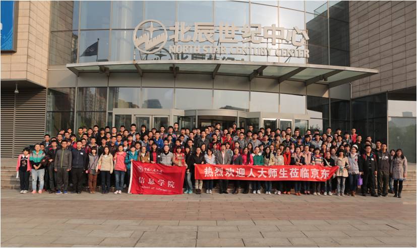 2013年10月30日,在3354cc金沙集团分团委实践部组织下,金沙官网2013级新生和部分高年级同学150余人来到位于北辰世纪中心的京东商城总部进行参观。党团学办公室主任张国富老师、分团委书记孙亚琳老师一同前往。