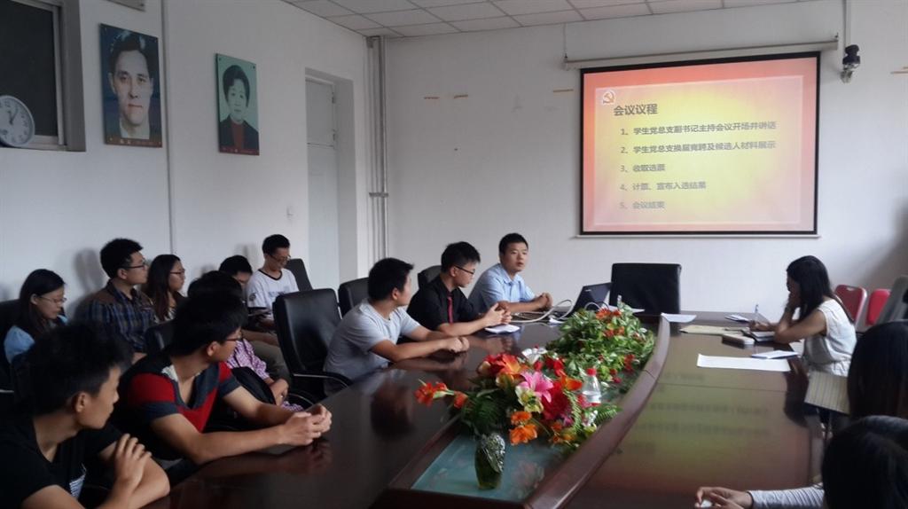 会议的主要内容包括四个方面,新党支部书记自我介绍、学生党总支情况及支委工作职责介绍、学生党总支2014-2015学年支委换届选举及连任党支部书记经验总结。