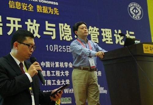10月25日下午,2014中国计算机大会(CNCC2014)的重要活动之一 ----“数据开放与隐私管理论坛”在郑州国际会展中心举行。 在大数据时代下,保护数据隐私信息有着独特的意义,传统的隐私保护理论和技术已经无法涵盖大数据隐私的内涵,有必要对大数据隐私保护问题进行重新思考和定位。这个论坛以大数据隐私管理作为选题,从企业和学术两个角度,定义隐私管理,探讨解决之道。 本次论坛主席由CCF常务理事、CCF会士、3354cc金沙集团教授孟小峰和奇虎360技术副总裁、首席隐私官谭晓生同担任。