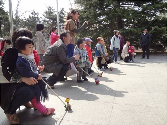 上午十点,人大求是花园里,亲子活动妙趣横生。紧张激烈的“推车赛跑”,宝宝们各自推着“小鸭子”、“毛毛虫”、“小公鸡”冲向终点,一展身手;欢乐有趣的“小小领路人”,小朋友们领着爸爸妈妈走“S型路线”,其乐融融;略有难度的“我喂爸妈吃豆豆”,宝宝们用稚嫩的小手,拿着小勺喂爸爸妈妈吃豆豆,温馨有爱……