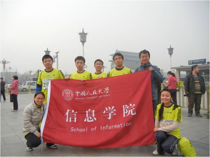 2012年11月25日8点30分,北京国际马拉松终于在期待中赛鸣枪开跑。数据工程与知识工程重点实验室的8名研究生(来自数据库与智能信息检索实验室的张香玲、杨涛、许娜娜、李晔、高乐喜、刘德海,来自高性能数据库实验室的吴剑锋,以及来自数据仓库与商务智能实验室的陈俞)报名参加了此次马拉松半程组21.0975公里的比赛。选手们在比赛过程中相互鼓励,相互帮助,克服了身体对寒冷天气的不适应,大部分同学都成功的完成了比赛,展现了信息学子积极向上的精神风貌。马拉松比赛是对身体和毅力的双重考验,此次参赛经历会帮助他们在今后的科研工作中不畏艰难,永攀科技高峰。