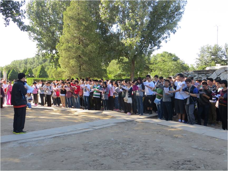 本次活动在院分团委组织部的精心组织下及学生会各部门的协调配合下举行。全体新生在学校求实石前集合出发,进入圆明园后,在西洋楼遗址前列队集合,接受庄严的爱国主义教育,深刻体会当代大学生应肩负的责任与使命。首先,分团委学生会主席董闻达同学发表演讲,点明活动主题。他说:“圆明园的毁灭令人扼腕,但揭示了一个深刻的道理,落后就要挨打,只有当代大学生不断努力,才能避免这种扼腕再次发生。”随后,2013级梅朗同学代表全体新生做演讲,在圆明园的断壁残垣下,表达自己激动而复杂的心情。他言辞激切地说道:“圆明园的毁灭成了中华民族自强的源源动力,在它的推动下,在它毁灭后的150年中,仁人志士前赴后继地为救中国忘我献身。要实现中华民族伟大复兴绝不只是口号,要落在我们大学生的肩上!”接下来,全体新生在梅朗同学的带领下,在大水法遗址前,庄严地举起右手宣誓,誓让青春迸发出光彩,争做国民表率,社会栋梁!整个活动的气氛达到最高潮。在铮铮的誓言声中,在全体新生洋溢的爱国热情中,本次活动圆满结束。