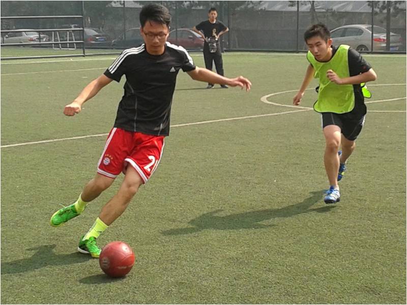 上半场,实力强劲的两队陷入胶着,由六班前锋彭宇清带球过人,门侧进球首开纪录。