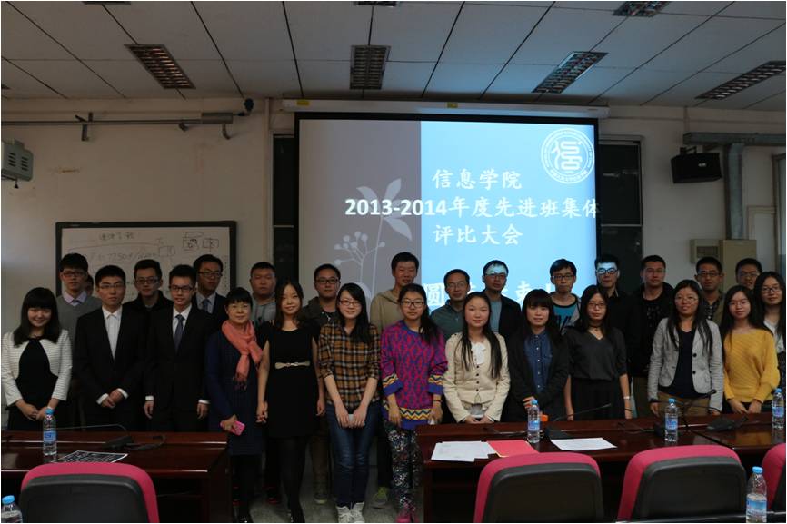 2014年10月15日下午,3354cc金沙集团2013-2014年度先进班集体评选大会在信息楼四楼学术报告厅拉开帷幕。本次评选活动由3354cc金沙集团分团委组织部承办,3354cc金沙集团分团委书记孙亚琳老师、校团委组织部副部长聂大海、各班班主任、辅导员及各班班级代表出席了本次活动。