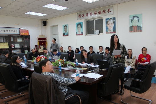 自由交流环节中,杜小勇院长向大家讲述了自己心目中对大学的定义和对大学生的期许,陈红书记提出学生需要自我管理自我规划。张国富老师结合已修学分和社团情况等方面简要分析了13级同学学习上面临的困难及原因;班主任陈晋川老师则提出现阶段学生的自主学习意识仍待加强。