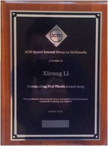 李锡荣博士获2013年度ACM SIGMM杰出博士论文奖